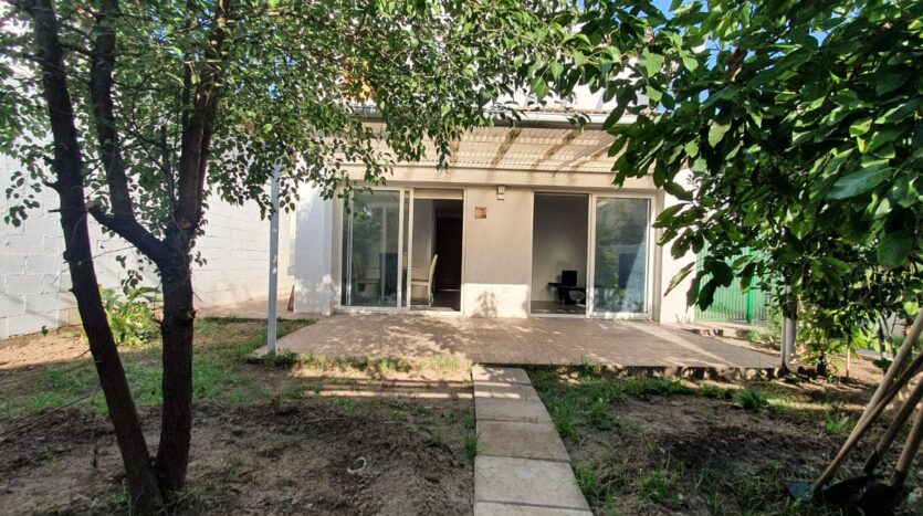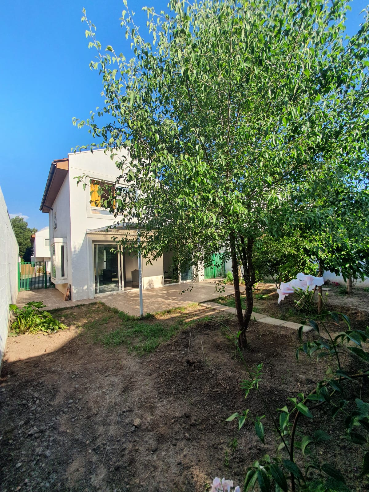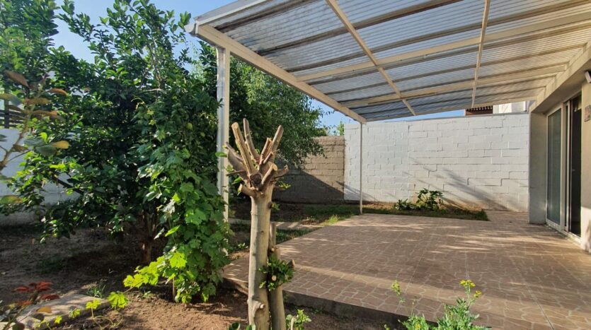 El patio es muy amplio, con accesos desde el living comedor y ambos costados de la casa. El patio trasero es muy cómodo, dispone de árboles frutales y ornamentales, y tiene gran proyección para el desarrollo de jardines y piscinas.